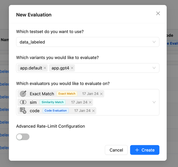 1. Simultaneous Evaluations: You can now run multiple evaluations for different app variants and evaluators concurrently.