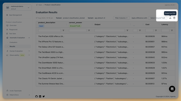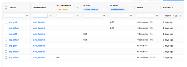 1. Dashboard Improvements: We've upgraded our dashboard interface to better display evaluation results. You can now filter and sort results by evaluator, test set, and outcomes.