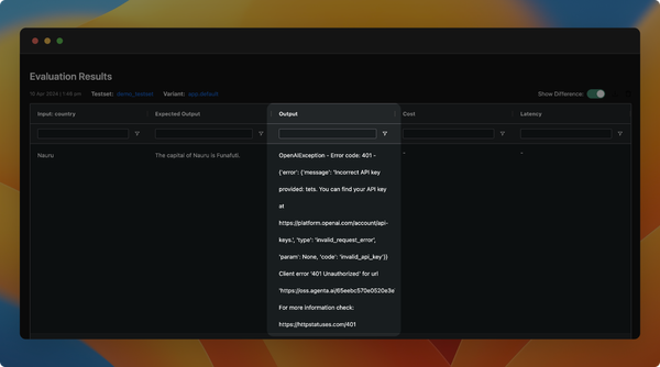 This necessitated modifications to the SDK. Now, the LLM application API returns a JSON instead of a string. The JSON includes the output message, usage details, and cost: